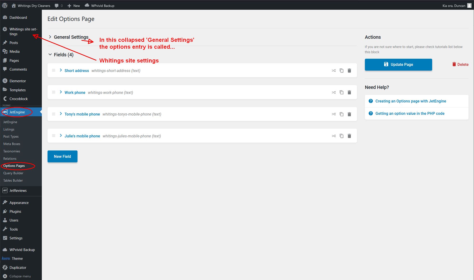Whitings, Crocobloc Options ("Whitings Site Settings" in the WordPress menu)